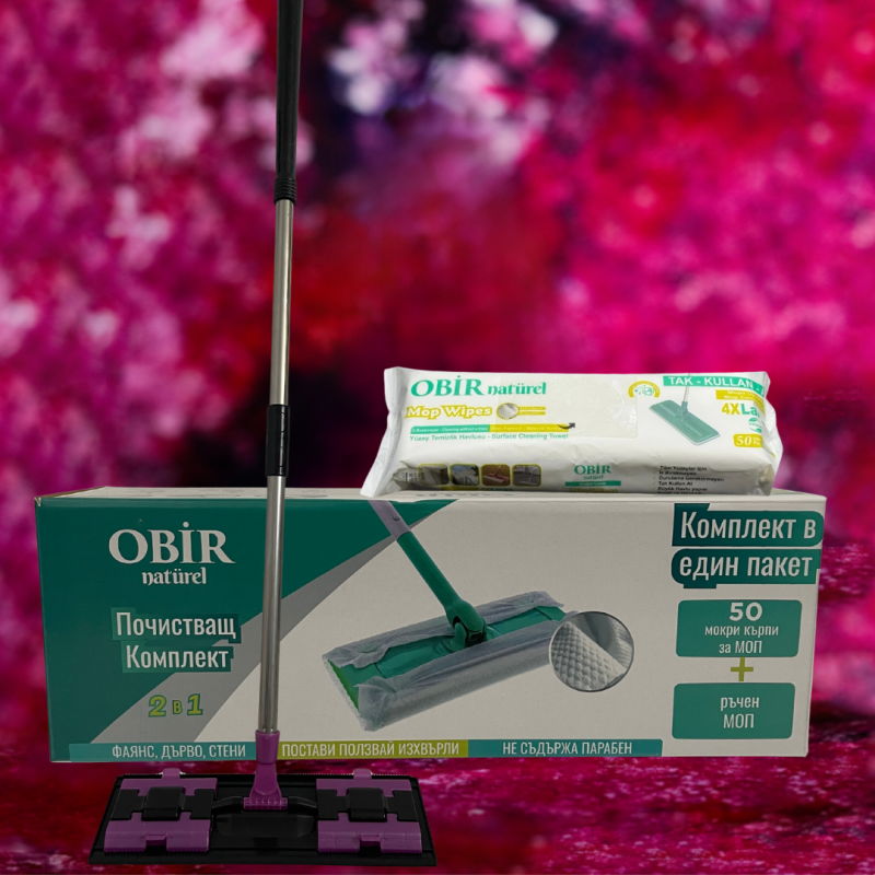 С удобния ръчен моп почистването става лесно и бързо,а включените 50 броя кърпи за моп гарантират отличен резултат при всяко изполване.
